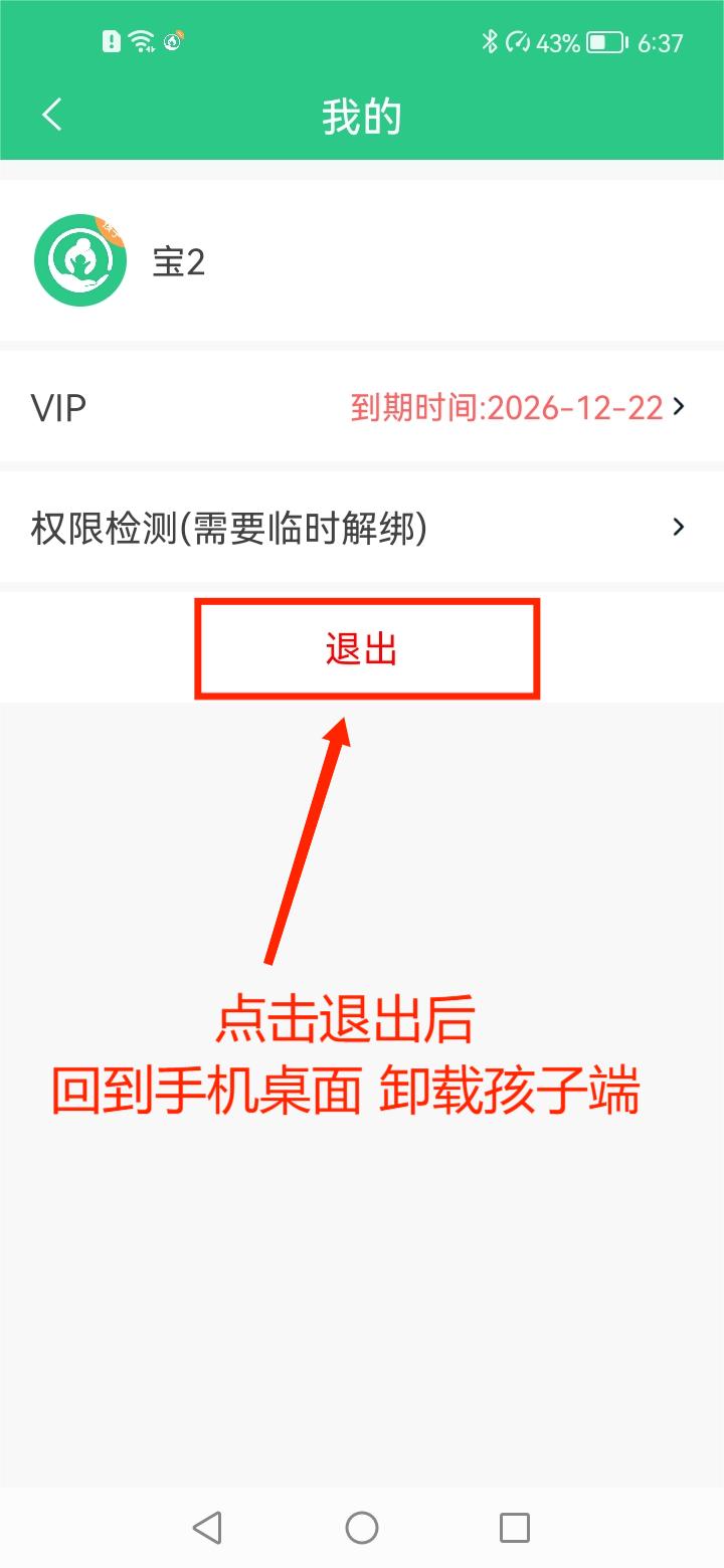 打开孩子端->点击头像->退出 回到桌面->卸载孩子端