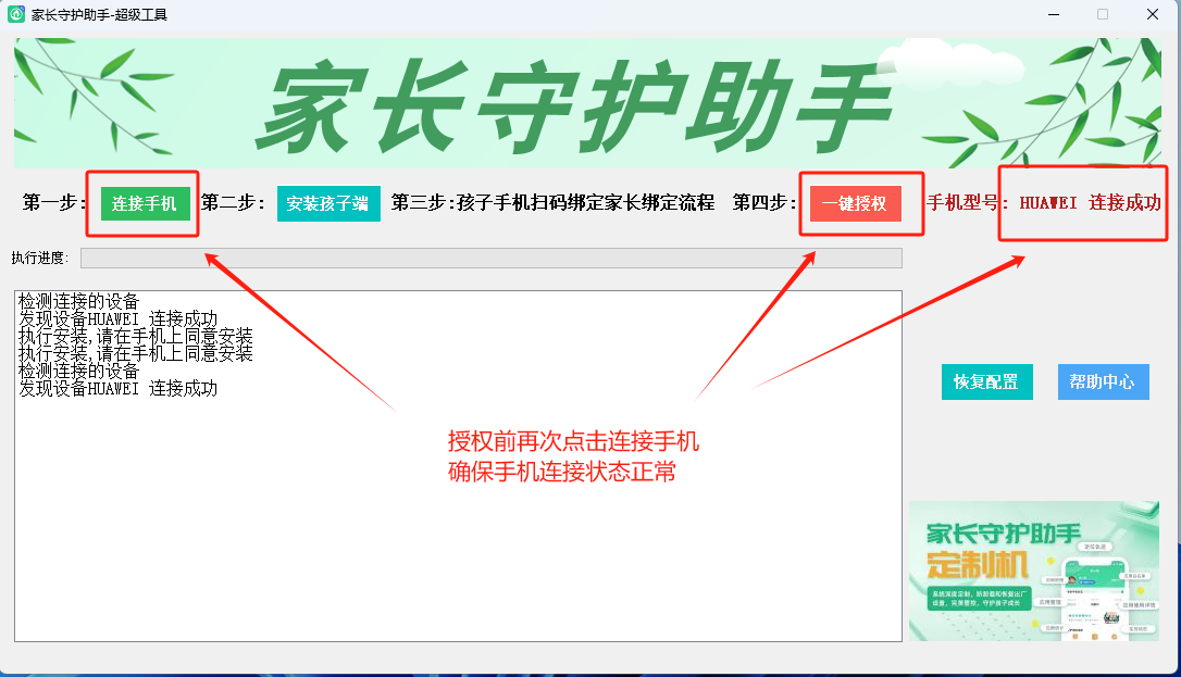 第四步 安装孩子端,绑定家长,并开启相关权限